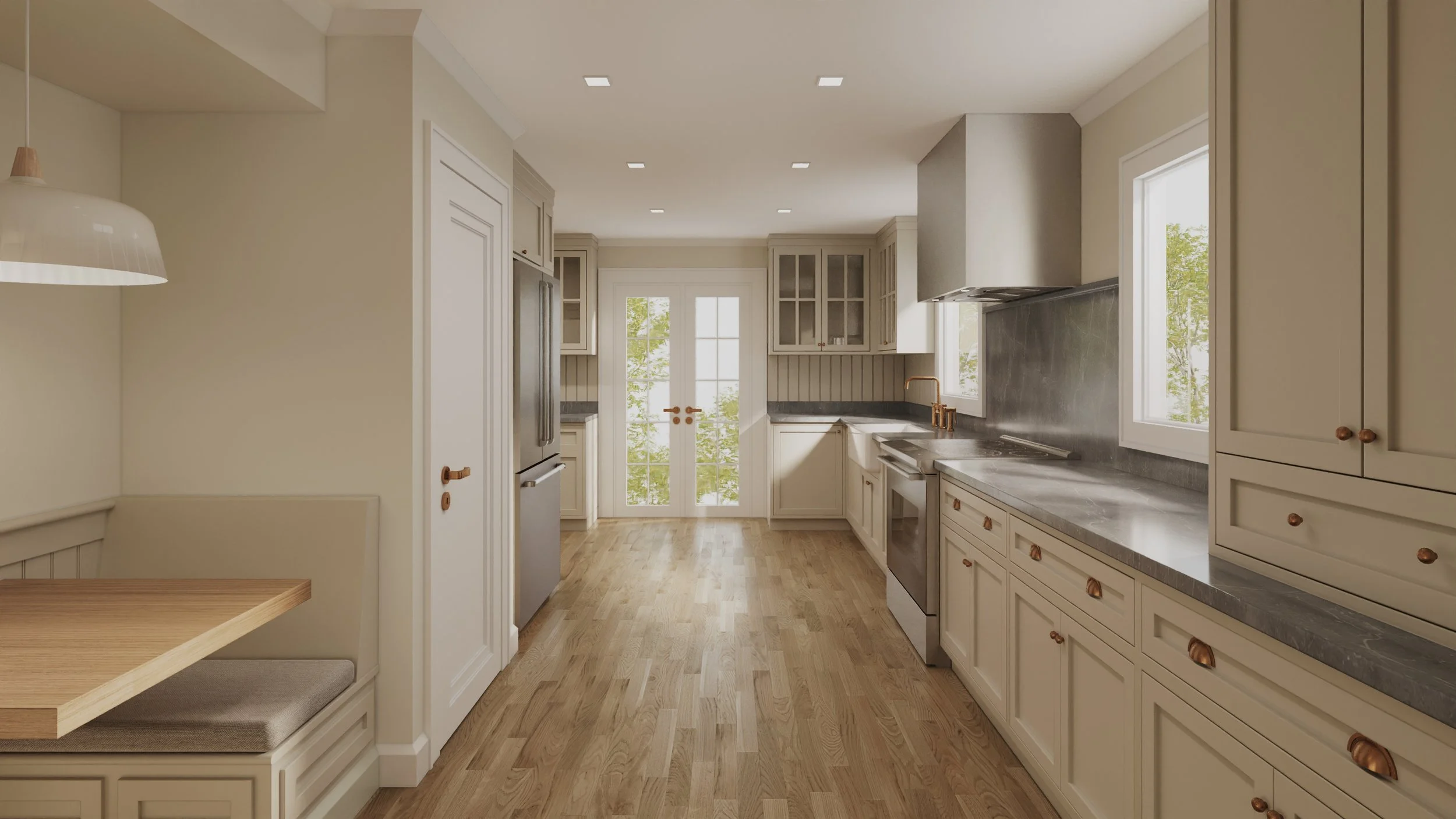 In this fast-track project, the scope involved renovating the first and second floors. The primary objective for the first floor was to create a practical mudroom with functional storage space and resilient finishes capable of withstanding daily wear and tear. Furthermore, the aim was to establish a seamless and graceful transition to the newly renovated kitchen, complete with ample countertop space. On the second floor, the layout was reconfigured to establish a comfortable Master Suite, complete with separate walk-in closets, as well as a conveniently located small laundry closet adjacent to the hallway.